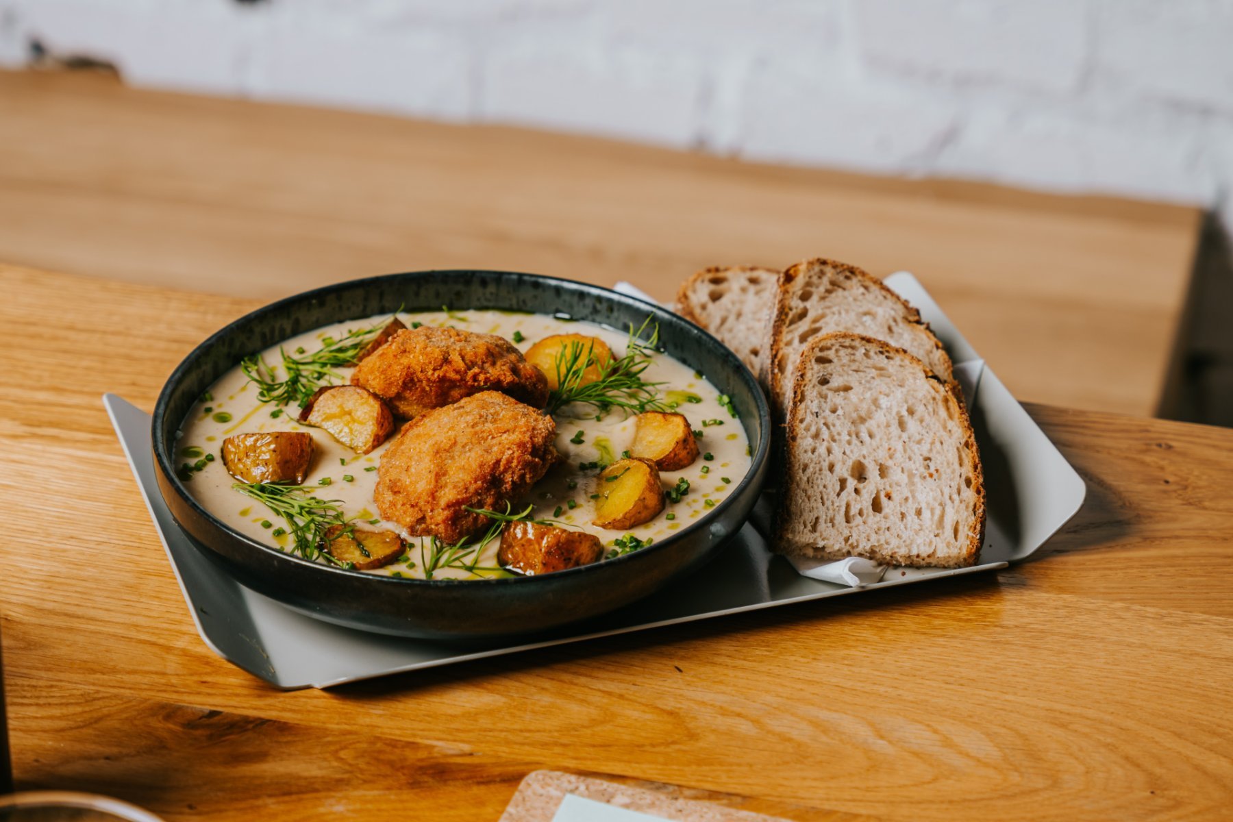 Pripvarok podľa týždennej ponuky s domácimi fašírkami a kváskovým chlebom.