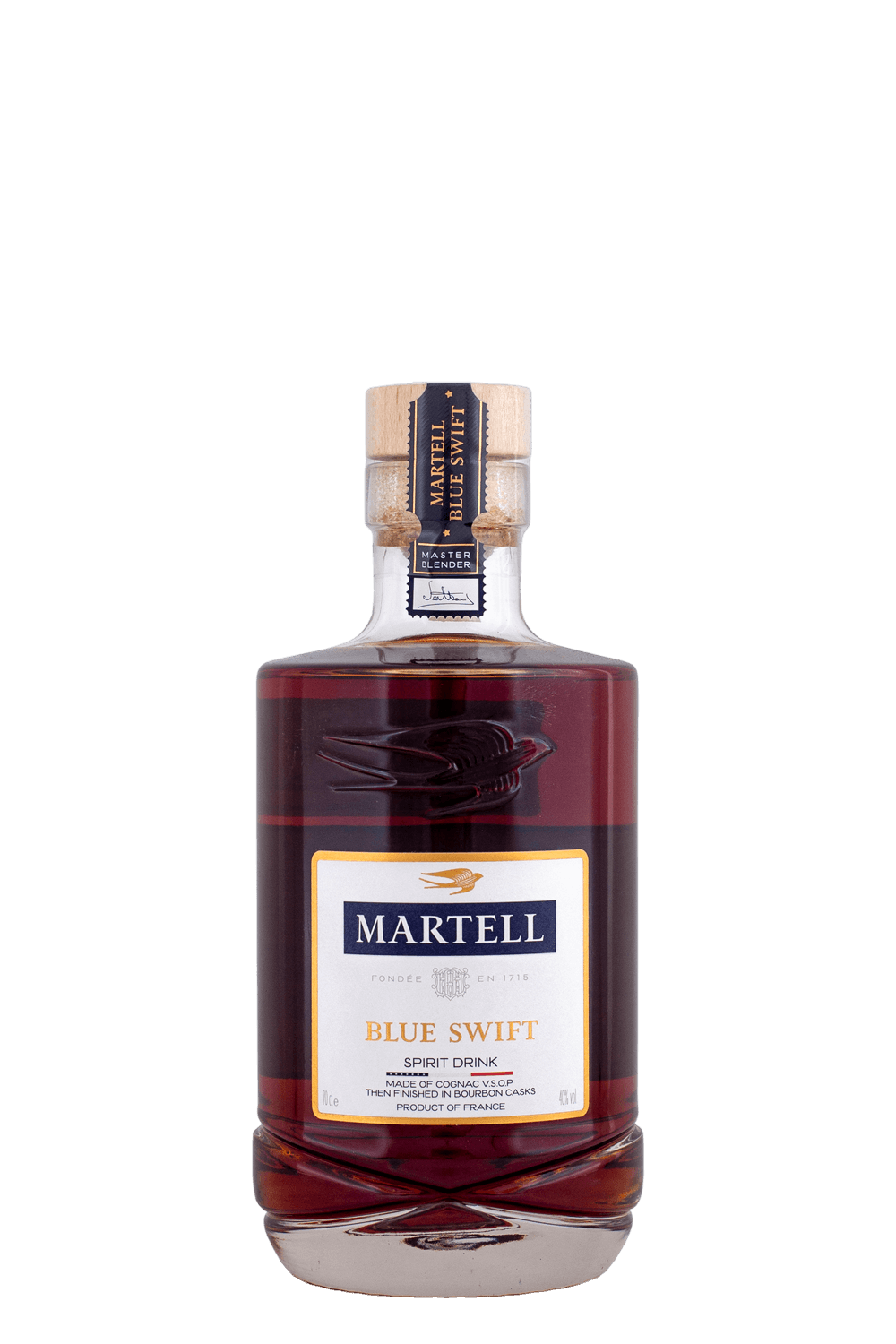 Martell Blue Swift je jedinečná liehovina zo 100 % koňaku VSOP, tvorená zmesou eaux-de-vie zrejúcich minimálne 4 roky. Po zrení získava finálny charakter v sudoch po bourbone, ktoré jej dodávajú jemnú sladkosť a moderný štýl. V chuti sa objavujú tóny zrelého ovocia, vanilky a ľahko praženého dubu, vďaka čomu je ideálna na pomalé vychutnávanie aj do prémiových koktailov.