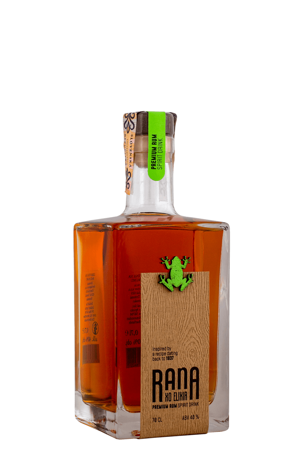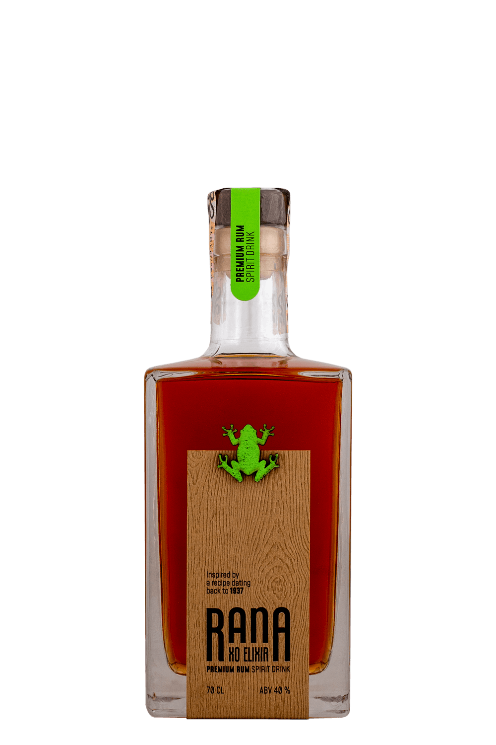 Rana XO Elixir je karibský rumový spirit s dominantným pôvodom z Dominikánskej republiky, doplnený o destiláty z Venezuely a Trinidadu. Zreje 3–5 rokov v sudoch po bourbone, vďaka čomu ponúka jemnú a vyváženú chuť s tónmi vanilky, karamelu, kokosu, duba a ľahkého korenia. Skvelo chutí čistý, na ľade aj v prémiových koktailoch.