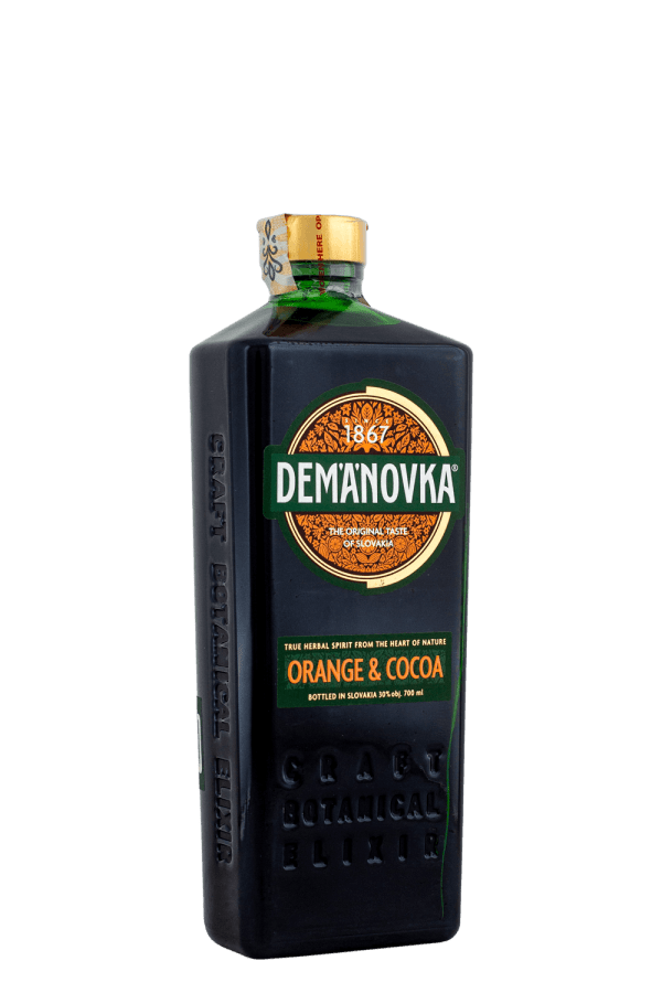 Demänovka Orange & Cocoa je originálny bylinný likér s jedinečným spojením horských bylín, sviežej pomarančovej chuti a jemne horkastých kakaovo-čokoládových tónov. Prináša harmonickú kombináciu sladkosti, ovocnej sviežosti a dlhej čokoládovo-pomarančovej dochuti. Výborná voľba na miešané drinky aj dezertné servírovanie.